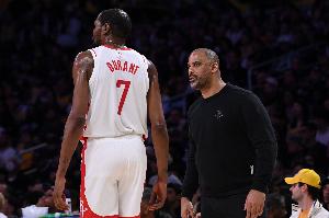 体育资讯4月25日讯 今日NBA西部季后赛首轮G3,火箭主场迎战湖人,据名记Shams此前报道,火箭球星杜兰特因左脚踝扭伤将缺席今日比赛!