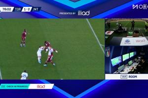体育资讯04月27日讯 意甲第34轮,国米客战都灵。75分钟,VAR介入,主裁亲自观看回放,判罚奥古斯托禁区内手球,都灵获得点球。