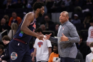 谈到昔日弟子恩比德因为阑尾炎接受手术一事,里弗斯表示:“搞什么鬼?阑尾炎?这种事简直是编都编不出来的。真的,你根本编不出来。当我还在执教这里时,我们为确保他的健康已竭尽全力。而且我知道现主帅纳斯也采取了同样的措施,因为我们之间经常交流。”