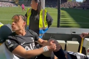 体育资讯4月26日讯 英超第34轮,热刺客战狼队。比赛第58分钟,热刺的哈维·西蒙斯疑似遭遇膝盖重伤!随后被抬下场。